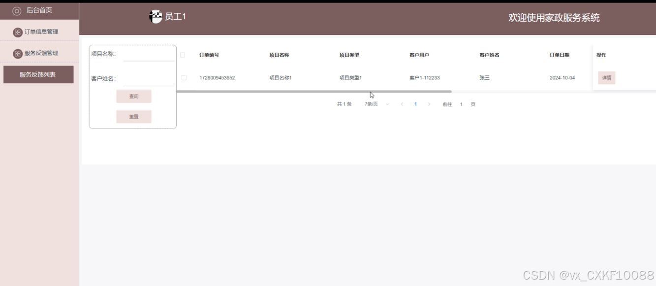 本系统采用Java作为开发平台,利用其强大的网络编程能力和成熟的框架技术,实现了家政服务的在线预约、服务评价、订单管理等功能。系统主要包括员工用户模块、客户用户模块、管理员模块。涵盖了服务项目管理、项目类型管理、订单信息管理、服务反馈管理、回访信息管理、系统管理、通知公告管理及资源管理等核心功能。