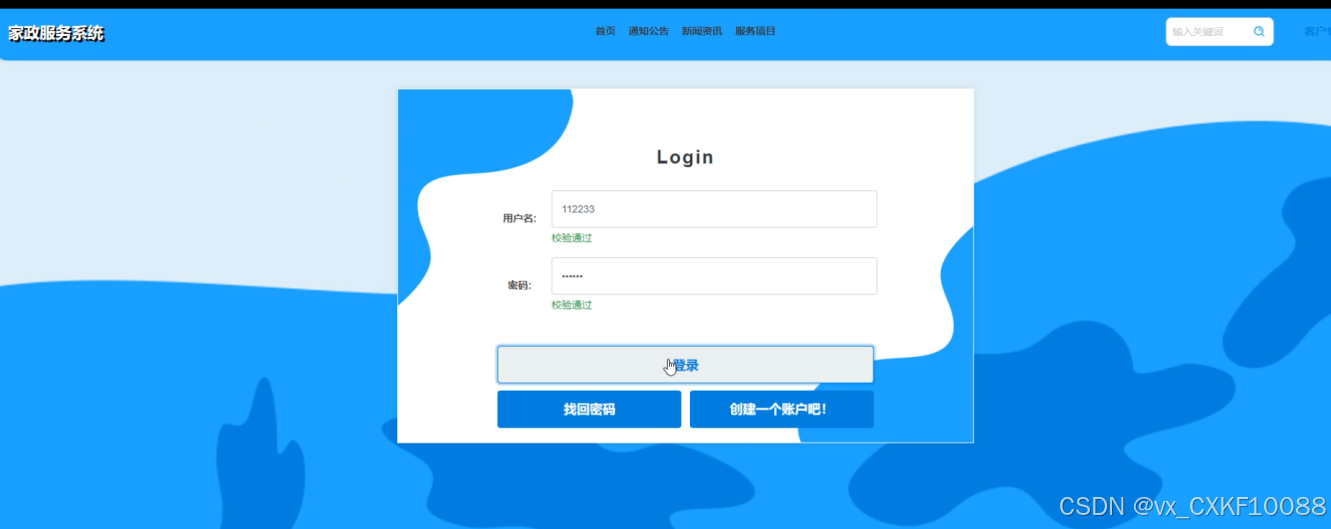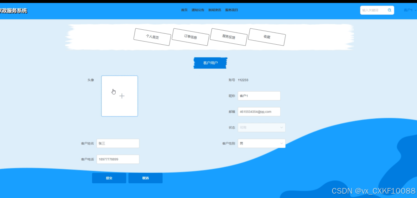 - 注册登录:客户用户需要通过系统进行注册并创建账户,输入必要的个人信息如姓名、联系方式等。注册成功后,用户通过登录功能进入系统,享受在线预约家政服务等功能。