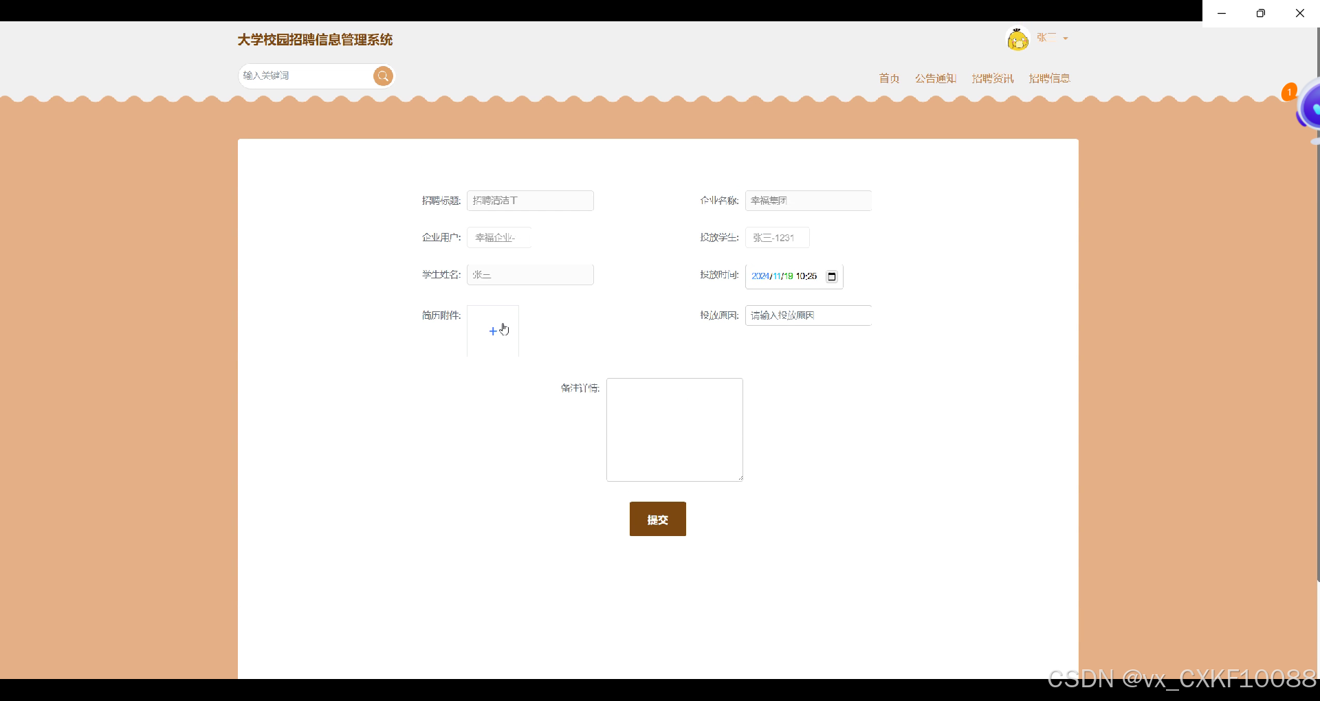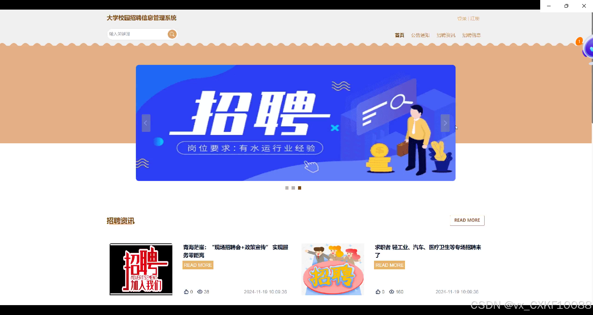 - 首页:显示重要的校园公告、招聘动态和轮播推荐岗位,为学生提供快速获取关键信息的入口。