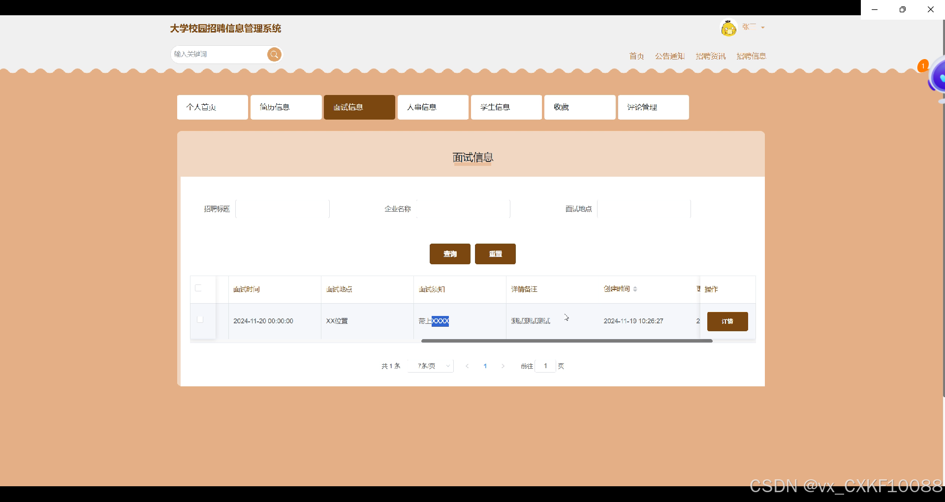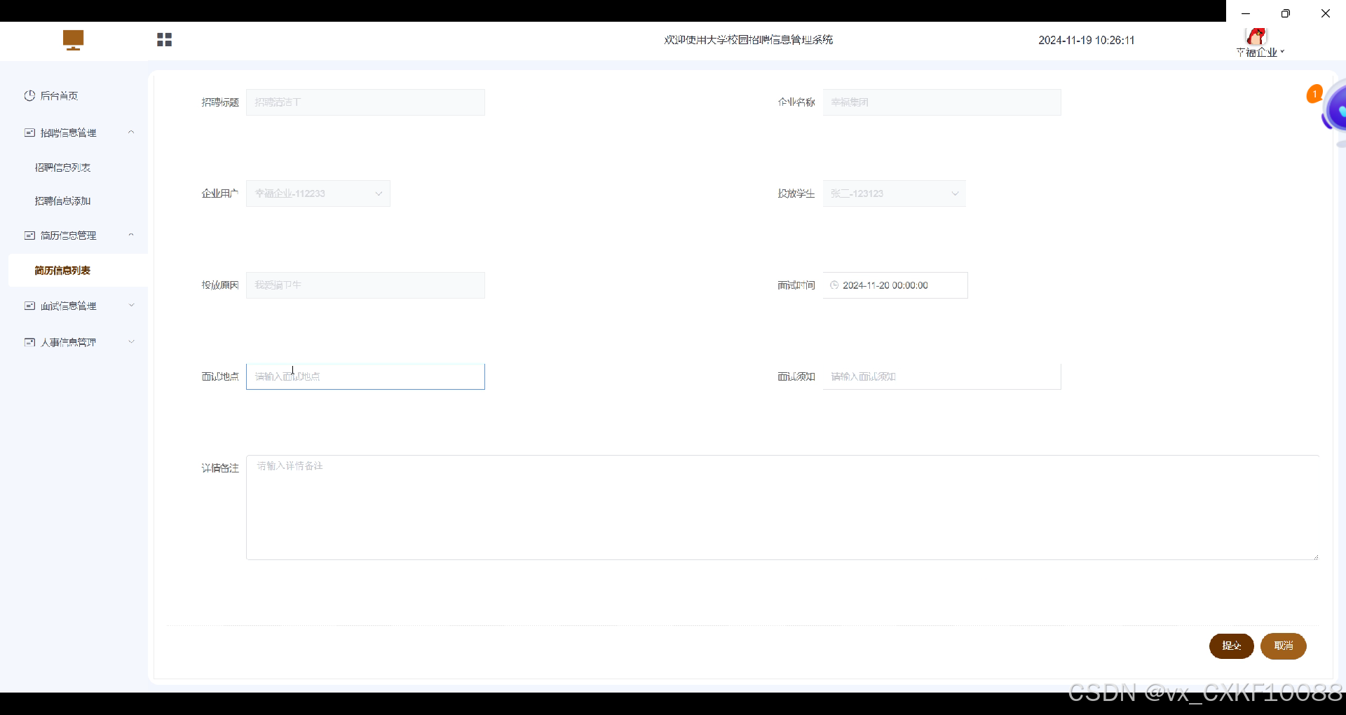 - 面试信息管理:安排面试时间和地点,向学生发送通知,并管理面试反馈记录。