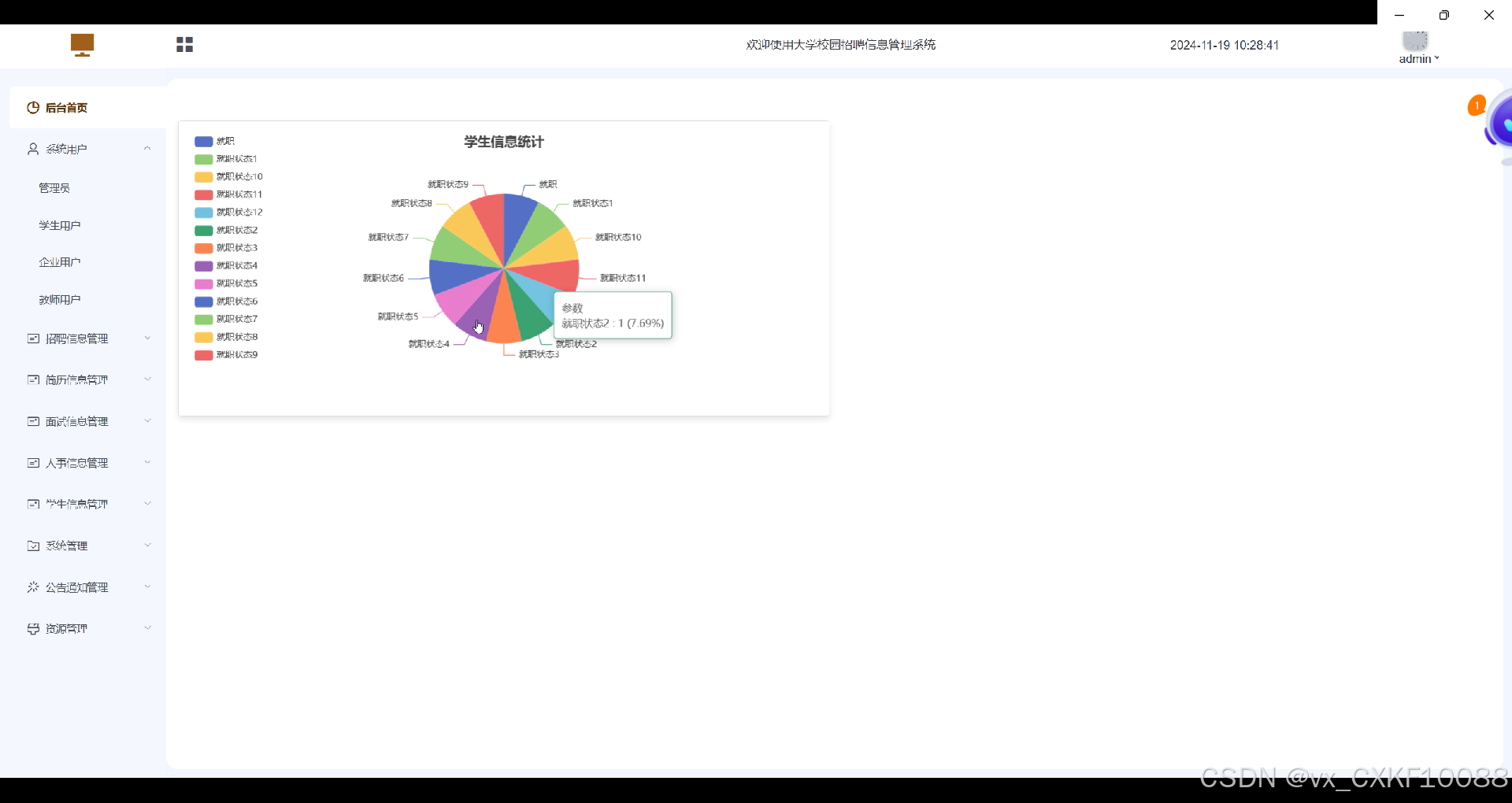 - 后台首页:展示学生就业信息的整体统计数据,为就业指导工作提供数据支持。