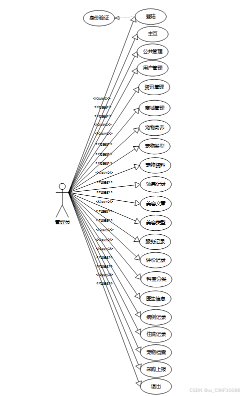 3. 功能设计:系统功能设计包括用户管理、资讯管理、商城管理、宠物寄养管理、宠物资料管理、医生信息管理、美容服务管理等模块。