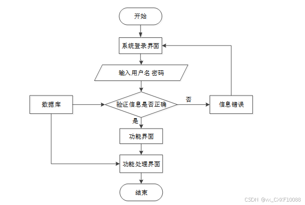 用户访问系统,进入登录页面页面,入其用户名和密码,后端服务接收登录请求,验证用户提供的用户名和密码是否匹配数据库中存储的信息,验证通过即可登录成功。登录流程图如下图2-5所示。