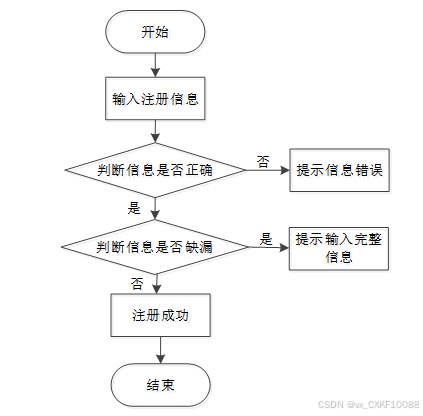 未有账号的用户可进入注册界面进行注册操作,填写注册表格,包括用户名、密码、姓名等必要信息。后台系统验证并保存用户提交的信息。分配唯一用户标识符。注册成功后,用户可以使用账号密码进行登录。用户注册流程图如下图2-4所示。