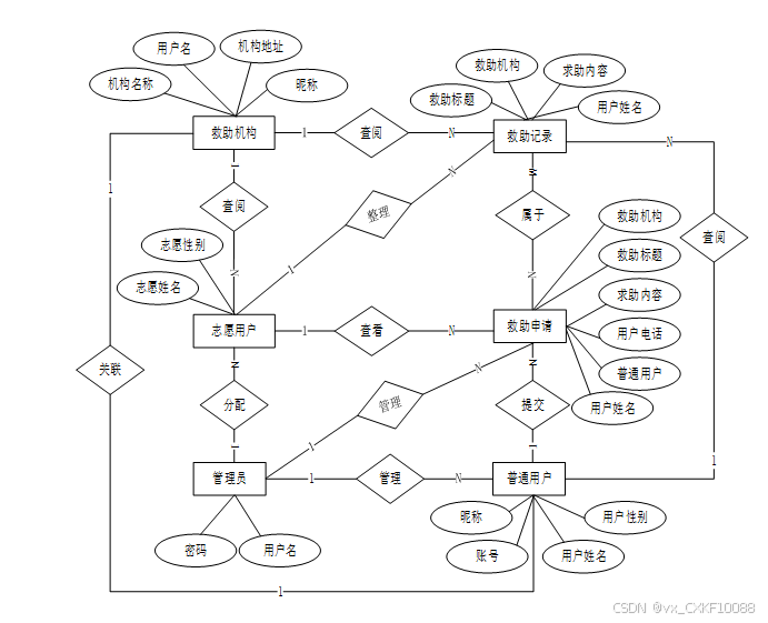 数据库概念模型通常采用高层次的概念来描述数据,常见的概念模型包括实体-关系模型(Entity-Relationship Model,ERM)、面向对象模型(Object-Oriented Model)等。在概念模型中,数据被抽象为实体(Entity)和实体之间的关系(Relationship),并且定义了实体的属性(Attribute),通常以E-R图来表达。以下将展示系统的全局E-R图。