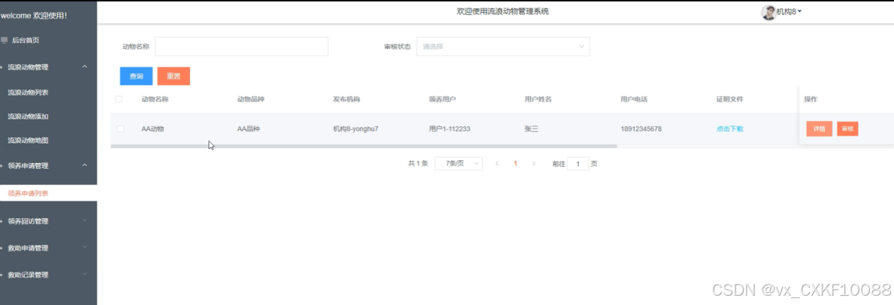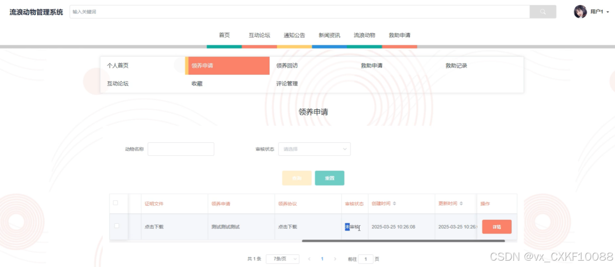 流浪动物问题不仅是社会管理中的一项挑战,更是反映社会文明和公益精神的重要标志。开发基于SpringBoot与MySQL的流浪动物管理系统,不仅能有效提高流浪动物的救助效率,还能通过信息化手段推动社会各界参与流浪动物保护事业。该系统通过对不同角色用户的功能划分,能够确保流浪动物的领养与救助流程更加规范、高效,同时为救助机构和志愿者提供一个协同工作的平台。系统的建立有助于提高社会公众对流浪动物问题的关注度,促进更多人参与到流浪动物的救助和领养工作中,推动社会对动物保护的认知与支持,从而为建设更具人文关怀的社会环境提供技术保障。