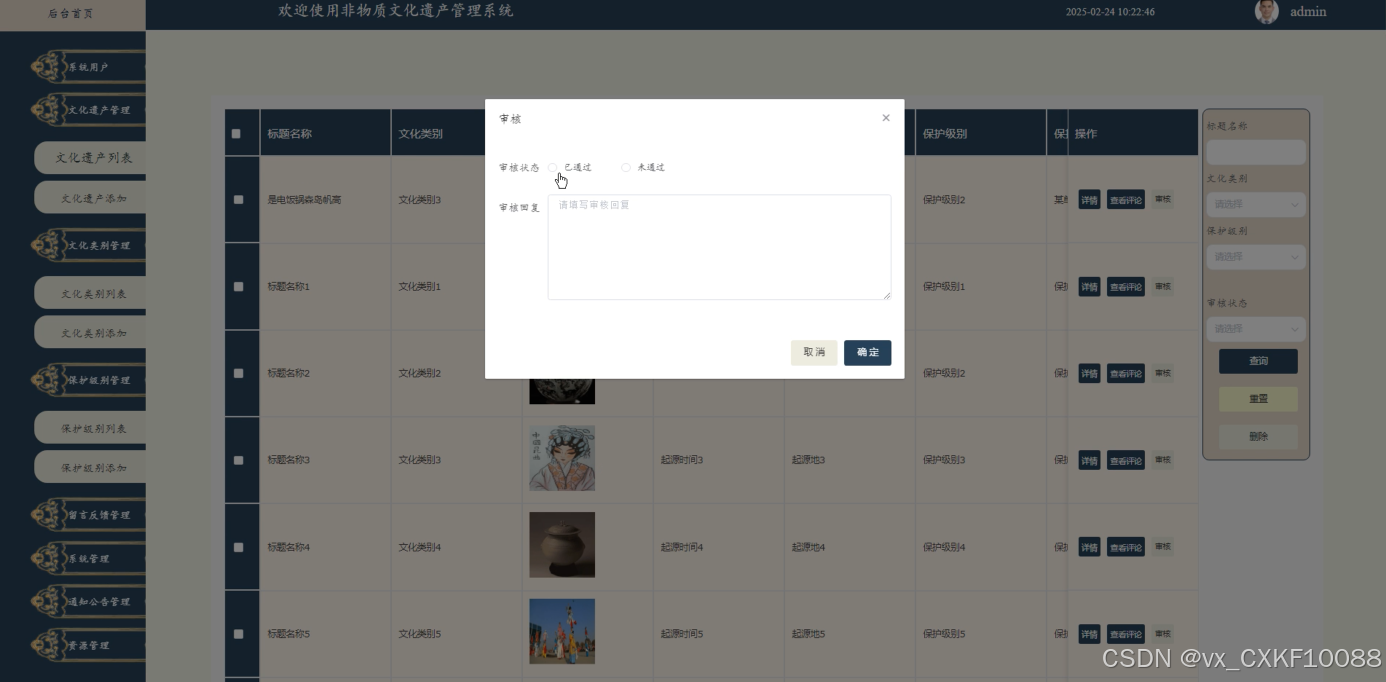 文化遗产管理:审核用户提交的文化遗产信息,确保内容准确无误后发布至平台。管理员可直接录入新的文化遗产信息,丰富平台资源库。
