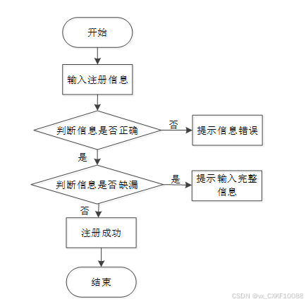 未有账号的用户可进入注册界面进行注册操作,填写注册表格,包括用户名、密码、电子邮件等必要信息。后台系统验证并保存用户提交的信息。分配唯一用户标识符。注册成功后,用户可以使用账号密码进行登录。用户注册流程图如下图所示。