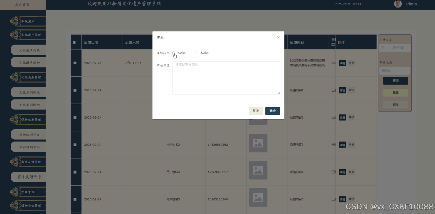 留言反馈管理:审核用户提交的留言反馈内容,处理用户提出的问题或建议。
