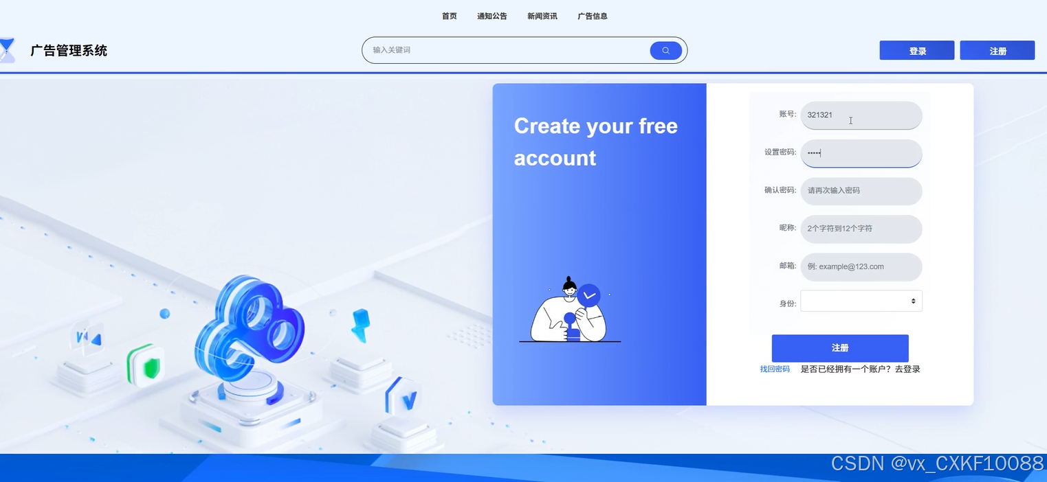 在数字化时代,广告行业正经历着深刻变革,传统广告管理方式面临诸多挑战。随着互联网广告规模持续扩大,广告信息量呈爆炸式增长,传统人工管理方式效率低下、易出错,难以满足精准投放与实时监控需求。广告主对广告效果评估要求日益严格,需要更科学、高效的管理系统支持[1]。SpringBoot作为轻量级Java开发框架,能快速构建稳定后端服务;Vue.js前端框架则可打造优质用户界面。将二者结合构建广告管理系统,可实现广告信息高效管理、精准投放策略制定及效果实时监控,提升广告管理效率与精准度,助力广告行业在数字化浪潮中稳健发展[2]。