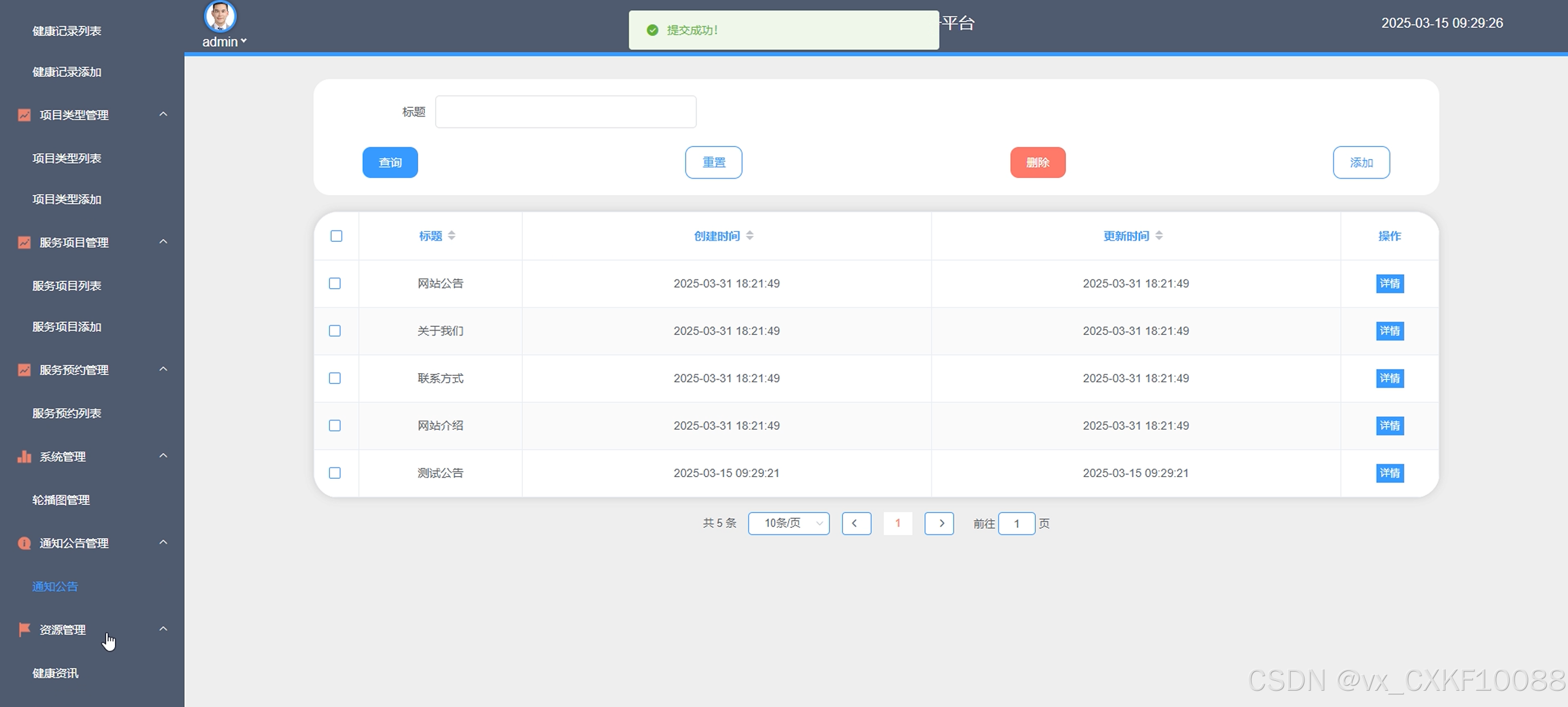 管理员可以发布、编辑和删除通知公告,支持公告的分类管理。用户可以在前端查看公告并进行收藏和评论,提升信息传递的效率和互动性。