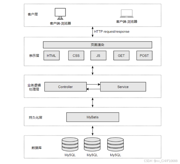 B/S(Browser/Server)架构是一种基于浏览器和服务器的系统架构模式,用户通过浏览器与服务器进行交互。B/S架构简化了客户端的部署和管理,用户无需在本地安装复杂的软件,只需使用标准浏览器即可访问应用程序。服务器端负责处理业务逻辑和数据存储,客户端则主要负责展示用户界面和数据交互[3]。B/S架构的设计使得系统更新和维护集中在服务器端,降低了维护成本。