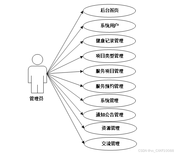 UML(统一建模语言)用例图是需求分析阶段常用的工具,通过直观的图形方式表示系统的功能需求和参与者。每个用例图包含一系列用例,即系统能够执行的特定功能,以及与之交互的参与者。本文将对系统按照角色模块进行需求分析。