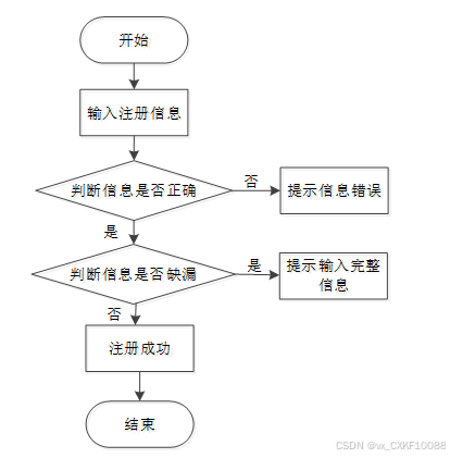 未有账号的用户可进入注册界面进行注册操作,填写注册表格,包括用户名、密码、电子邮件等必要信息。后台系统验证并保存用户提交的信息。分配唯一用户标识符。注册成功后,用户可以使用账号密码进行登录。用户注册流程图如图3-5所示。