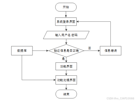 用户访问平台的网站,进入登录页面页面,入其用户名和密码,后端服务接收登录请求,验证用户提供的用户名和密码是否匹配数据库中存储的信息,验证通过即可登录成功。登录流程图如图3-4所示。