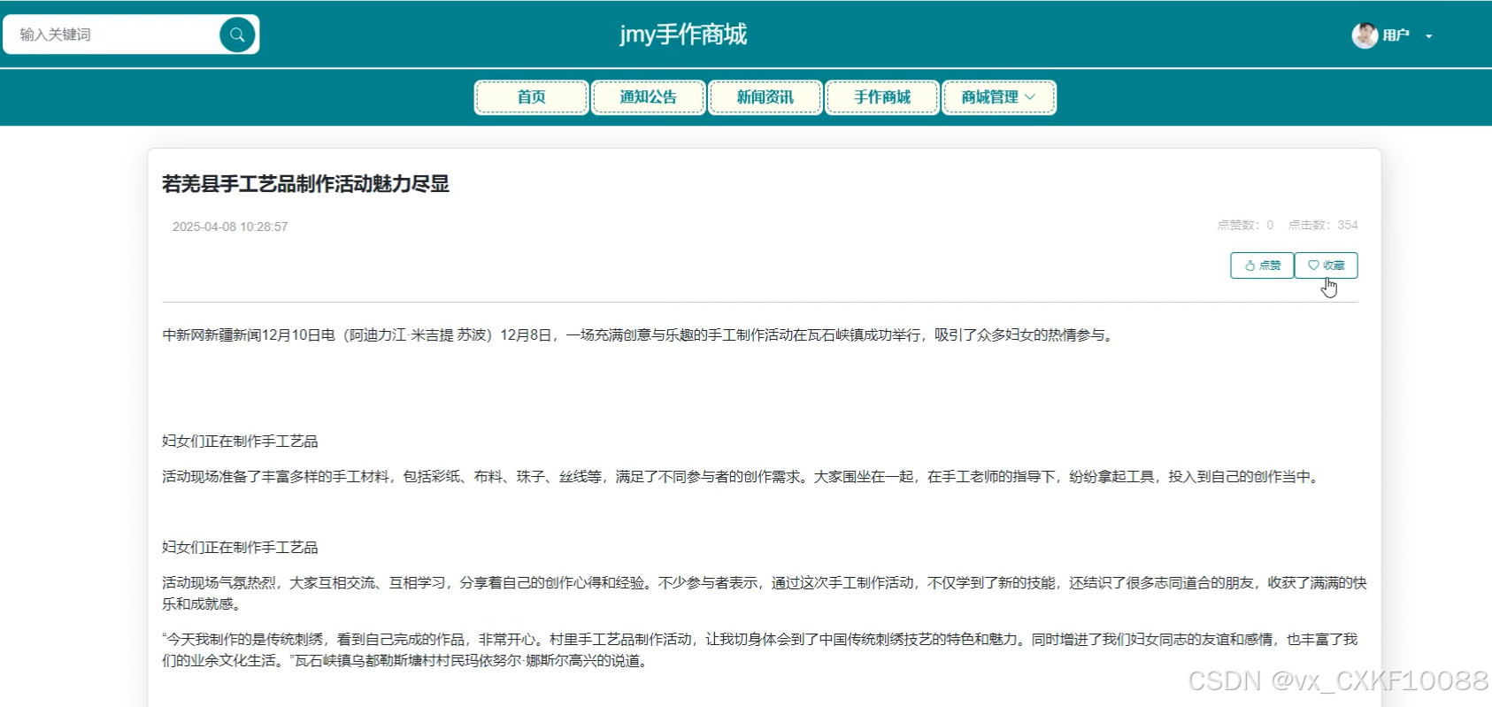 首页:用户可以通过首页快速访问平台的核心功能,包括通知公告、新闻资讯以及手作商城等,为后续操作提供便捷入口。