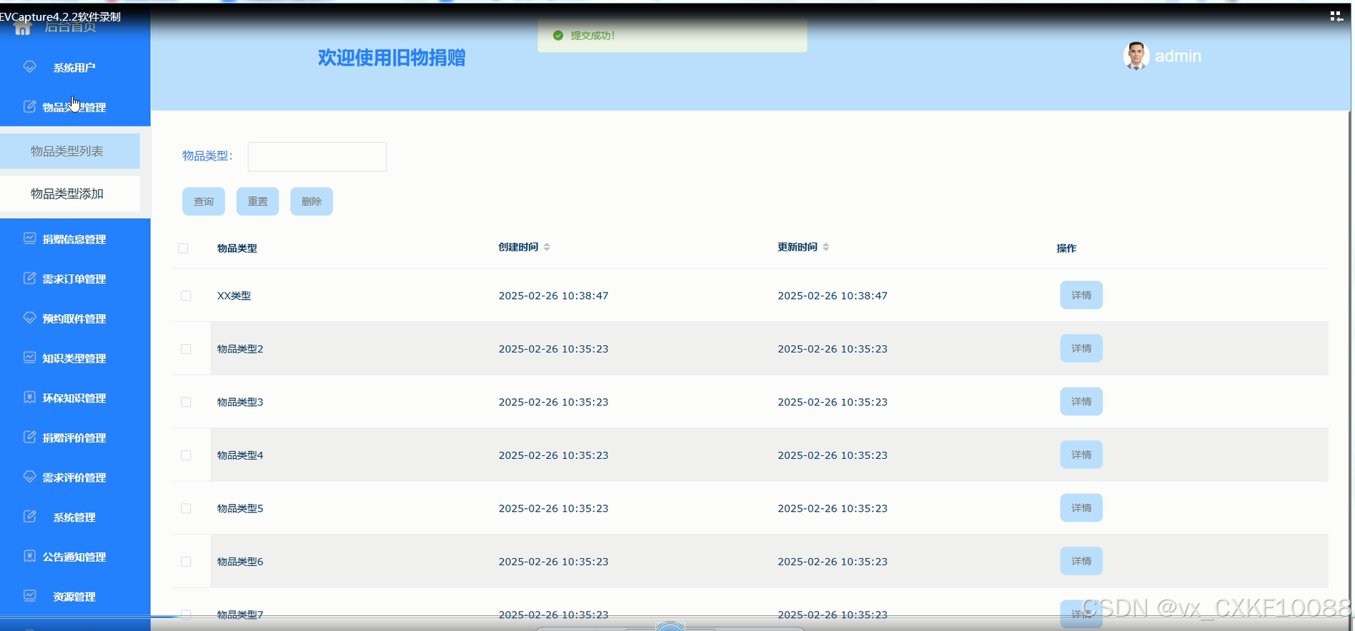 物品类型管理:管理和更新捐赠物品的分类,以便捐赠用户准确选择捐赠物品的类型。