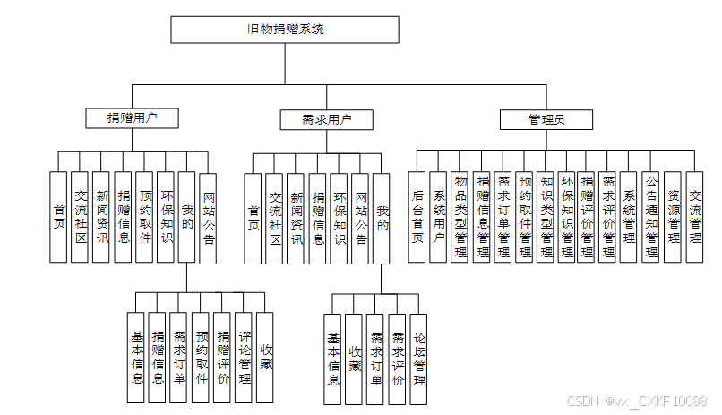 功能需求分析是旧物捐赠系统设计和开发的关键步骤,它旨在明确系统的功能和性能要求。以下是对旧物捐赠系统的功能需求分析: