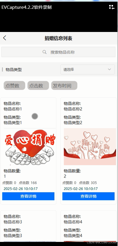 捐赠信息:需求用户可以查看捐赠用户发布的捐赠信息,选择自己需要的物品。