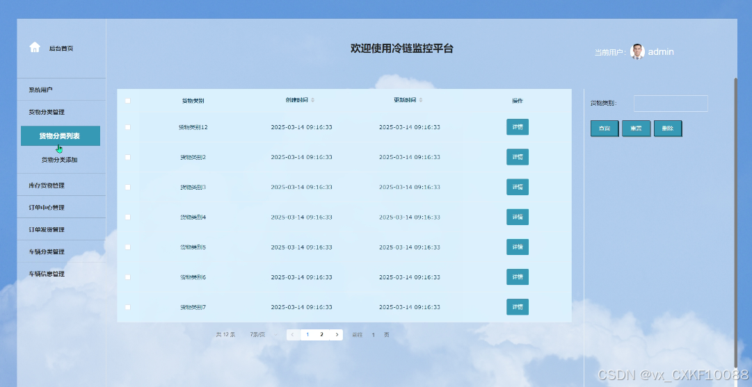 管理员可管理所有货物分类信息,包括新增、编辑、删除和查询货物分类。界面如下图所示。