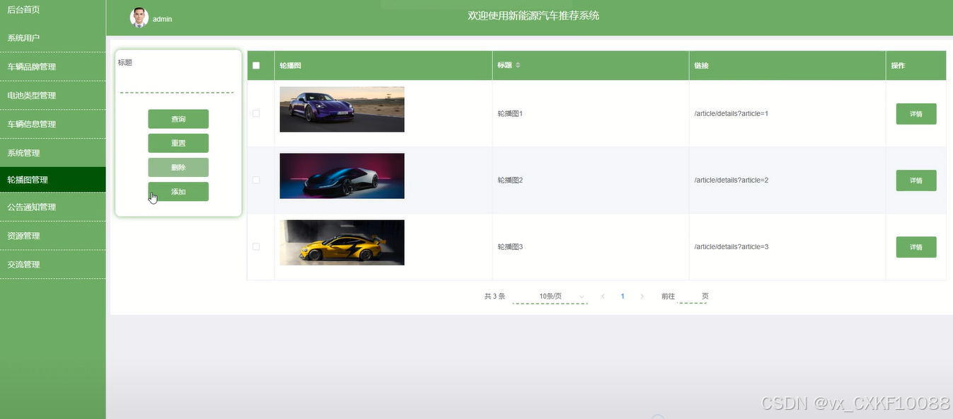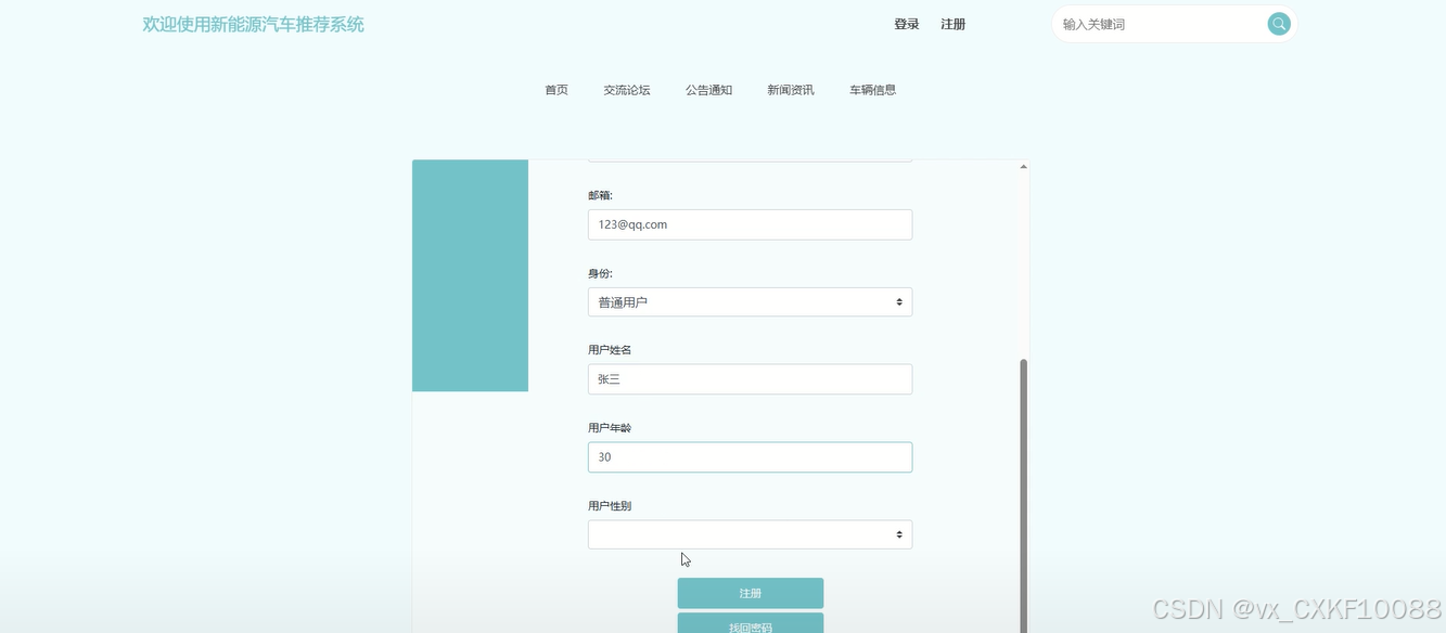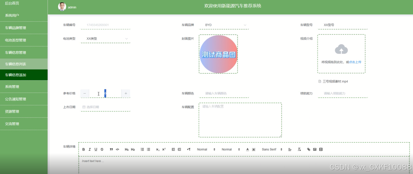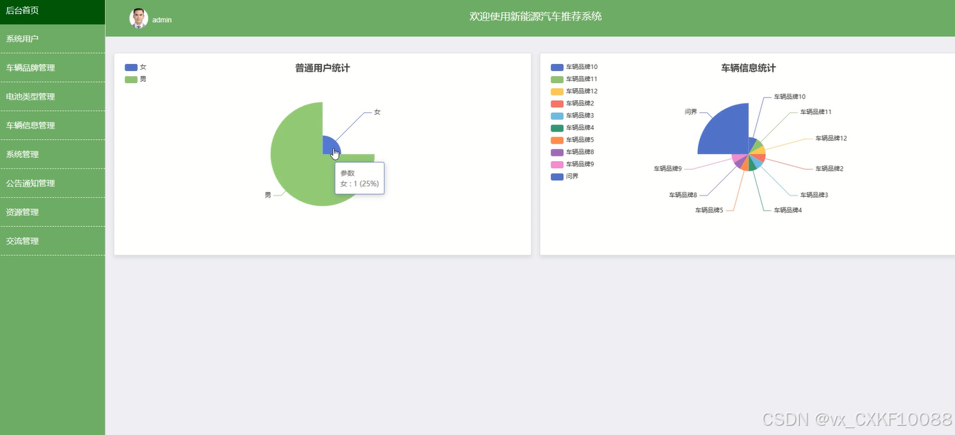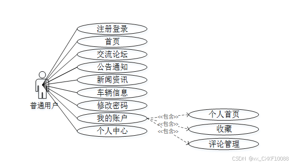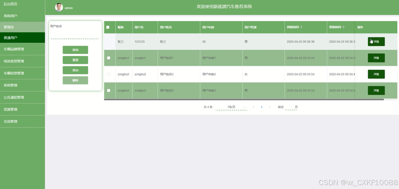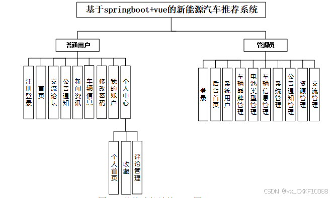 新能源汽车推荐系统包含普通用户和管理员两大角色,主要功能如下: