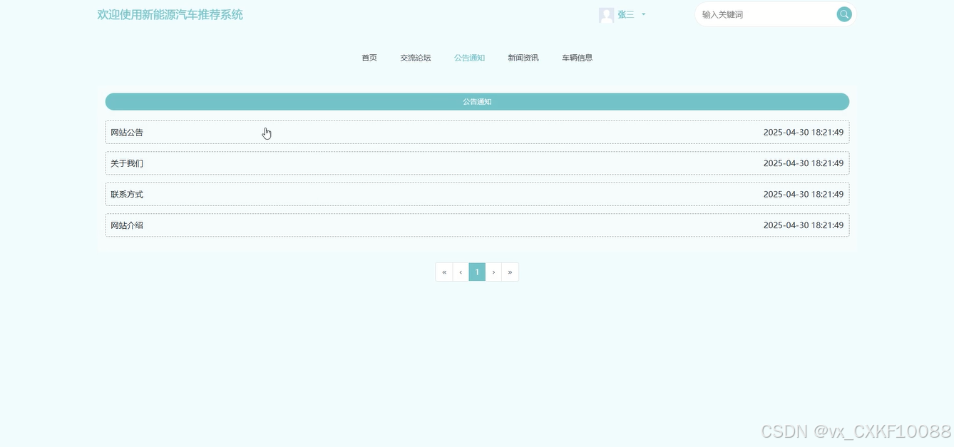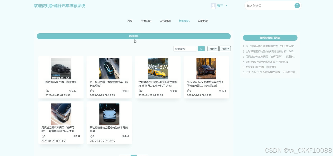 2.首页:首页展示最新的新能源汽车推荐、热门新闻、公告和论坛讨论,用户可以快速浏览、选择感兴趣的内容,并根据自己的需求做出决策。
