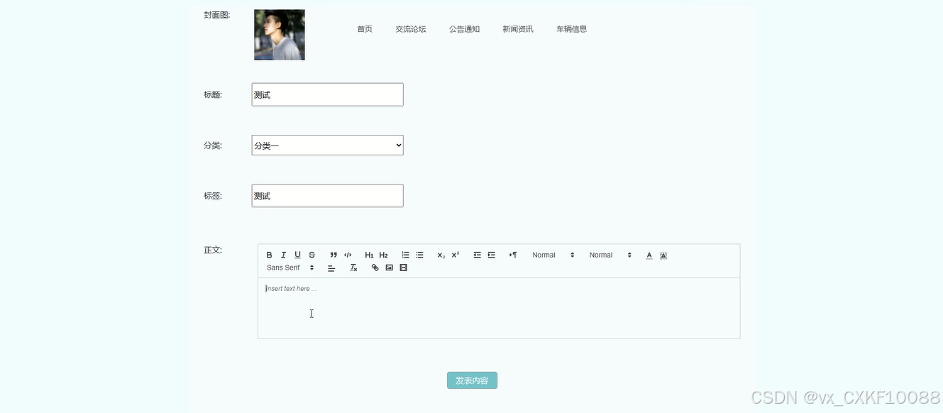 | 预期结果 | 提交以后,页面首页会显示新的新闻资讯 |