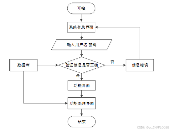 用户访问系统,可以选择进行注册或登录操作。注册成功后,用户可以使用注册的账号登录系统。登录后的用户可以进入系统功能界面,使用自己权限内的功能操作。程序操作流程图如图所示。