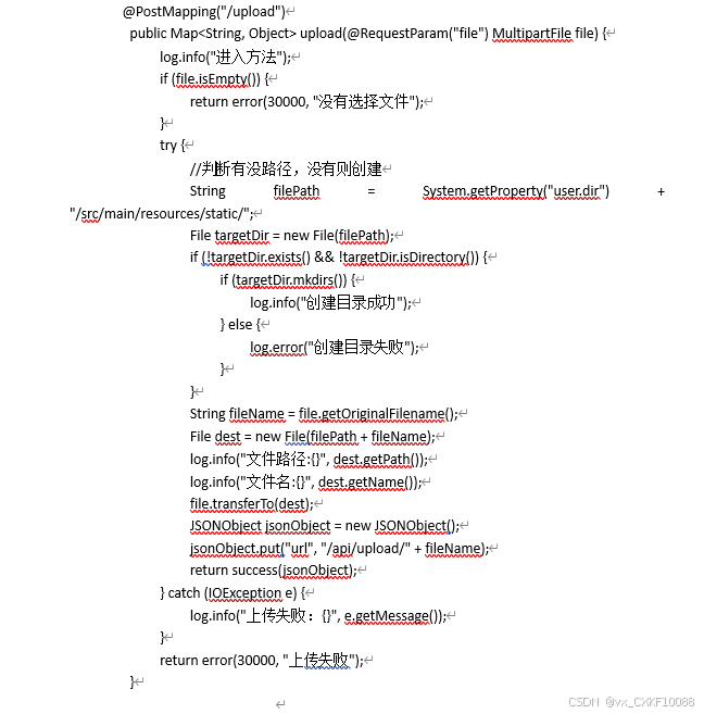 图片/文件/视频等的上传方法通过MultipartFile,代码如图所示。