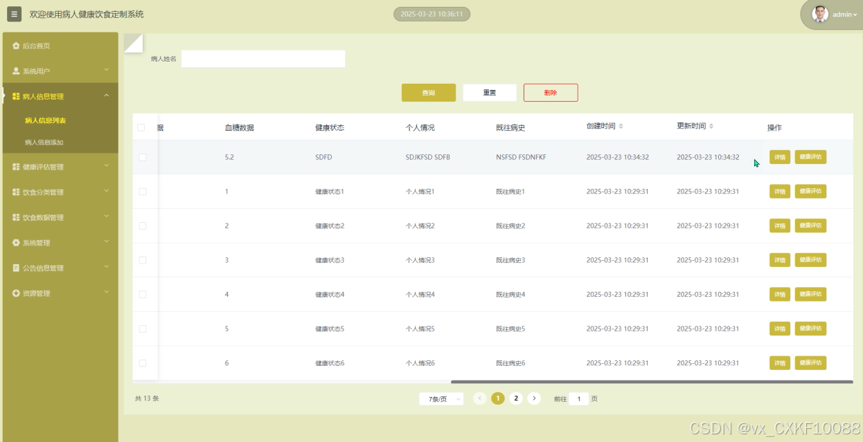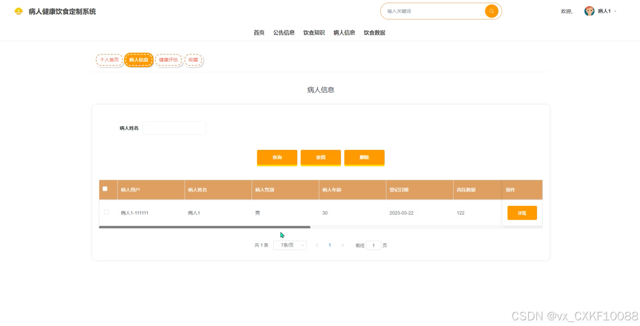 病人信息管理:维护病人基本信息和健康档案,确保数据的准确性和及时更新,为医生和营养师提供可靠的数据支持。