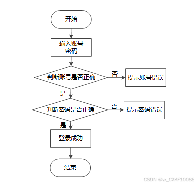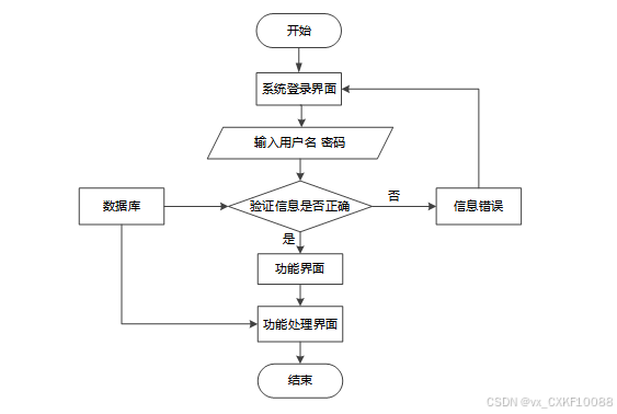 用户访问系统,进入登录页面,入其用户名和密码,后端服务接收登录请求,验证用户提供的用户名和密码是否匹配数据库中存储的信息,验证通过即可登录成功。登录流程图如下图所示。