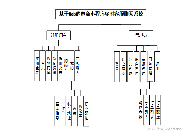 电商小程序实时客服聊天系统划分为了前端模块和后端模块两大部分。