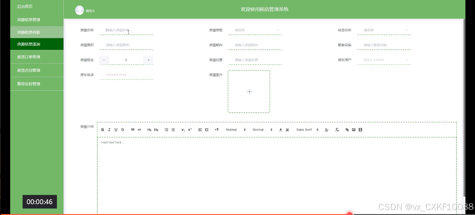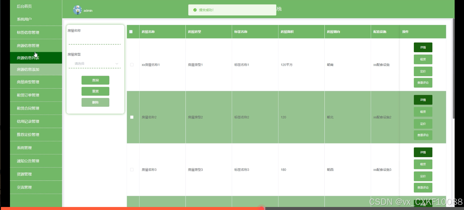 - 房源信息管理:管理员可以对房源信息列表和房源信息添加,管理审核房东提交的房源信息。