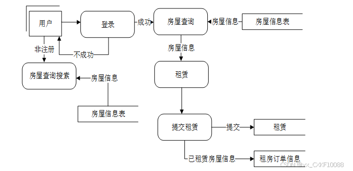 开发租房管理系统最主要的一个目的就是实现用户对房屋的租赁,图2-4就是系统的数据流图。