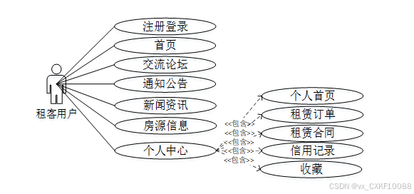 租房管理系统的完整UML用例图分别是图2-1和图2-2。