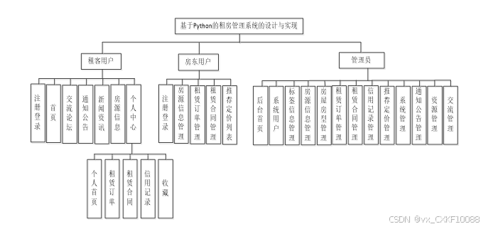 租房管理系统是中需要存储不少房源信息,其模块功能结构,具体的结构图如下: