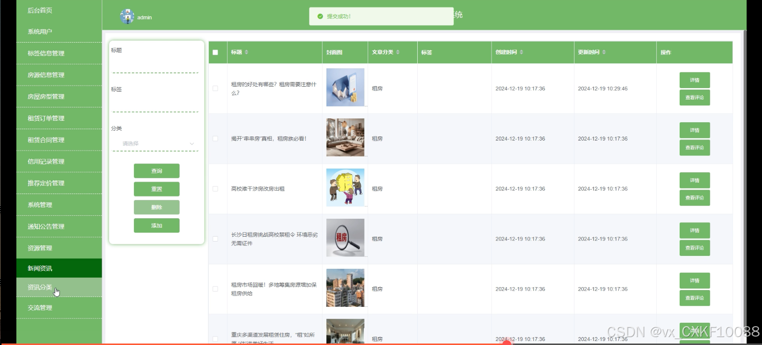 - 租赁合同管理:管理员可以查看租赁合同列表所有详情,可以进行增删改查操作。