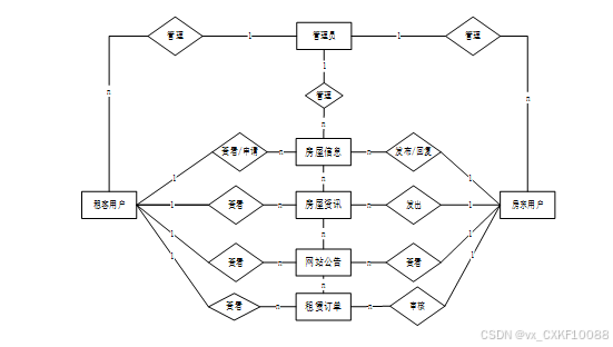下面是整个租房管理系统中主要的数据库表总E-R实体关系图。