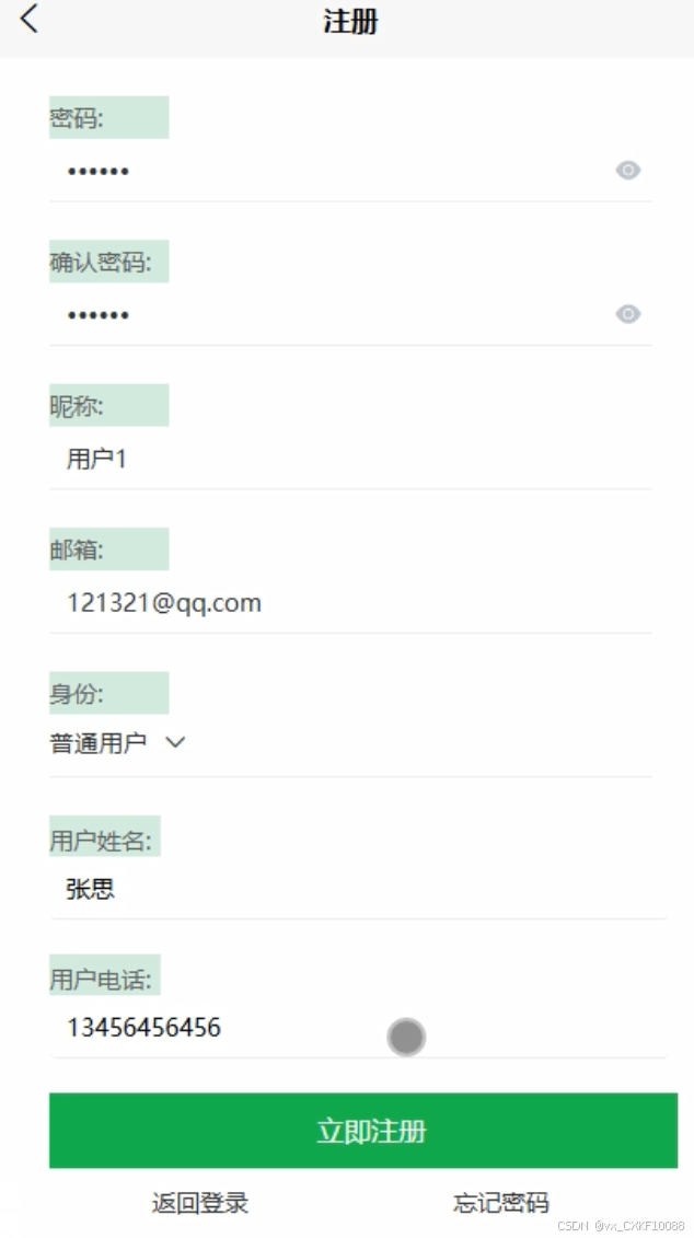 找回密码,接收用户输入的用户名、密码、验证码,并进行条件判断,代码如下: