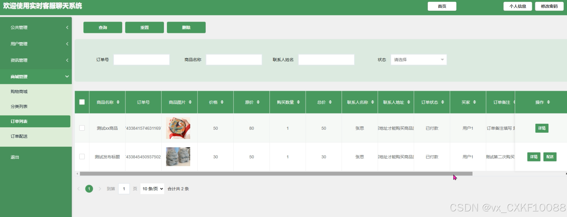 在线聊天:用户在购物过程中遇到问题,可随时发起聊天咨询,客服人员应及时响应,提供专业的解答和建议。聊天记录会被系统保存,方便用户后续查看。