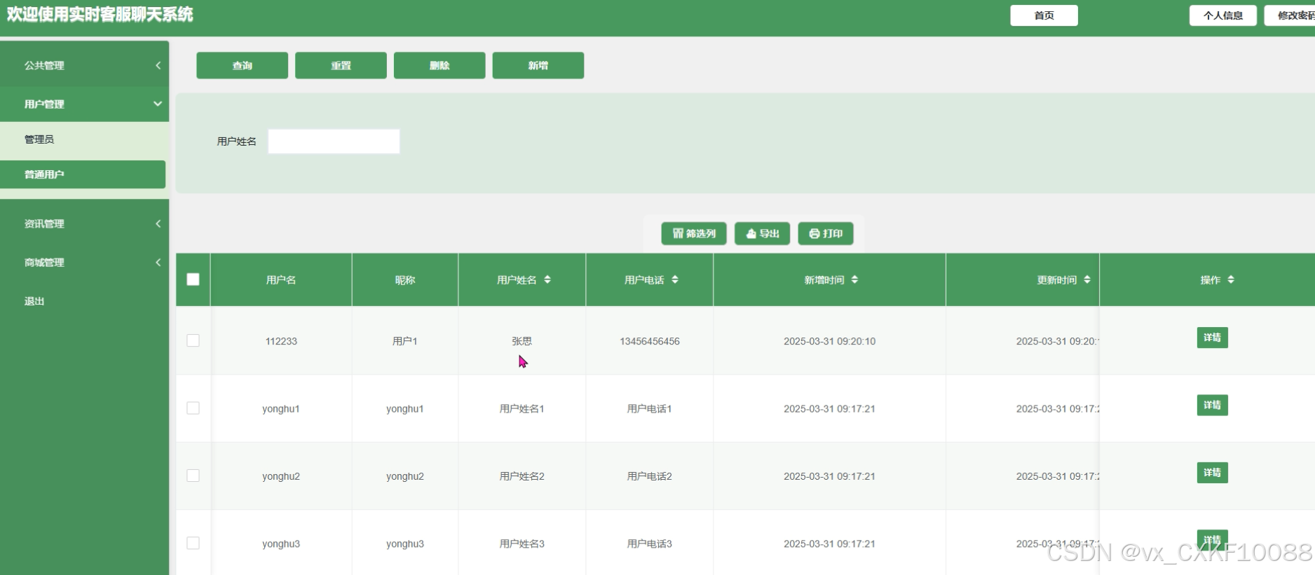 用户管理:管理员可以查看所有系统用户的详细信息,并支持增删改查操作。