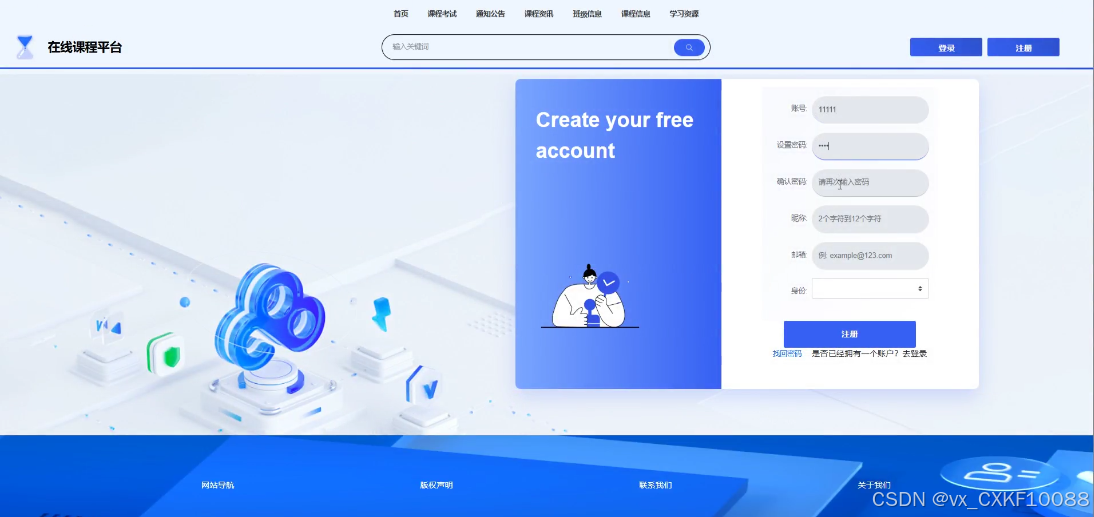 - 登录:提供登录、注册、忘记密码等服务。教师用户可以通过前端界面登录,与学生进行学习交流,体验便捷的在线教育互动体验。同时,教师也可以通过后端系统登录,进行课程管理和其他教学活动。