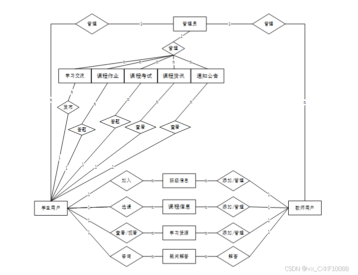 - 资源管理:提供课程作业、查询、重置、删除、详情、添加、题库、查询、重置、删除、添加、导入、下载导入文档、评分、评语等功能。教师可以轻松管理课程作业和题库,为学生提供丰富的练习资源。