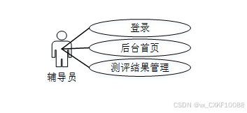 大学生心理健康智能测评预警系统中辅导员拥有登录、后台首页、测评信息管理等功能。辅导员用例图如下所示: