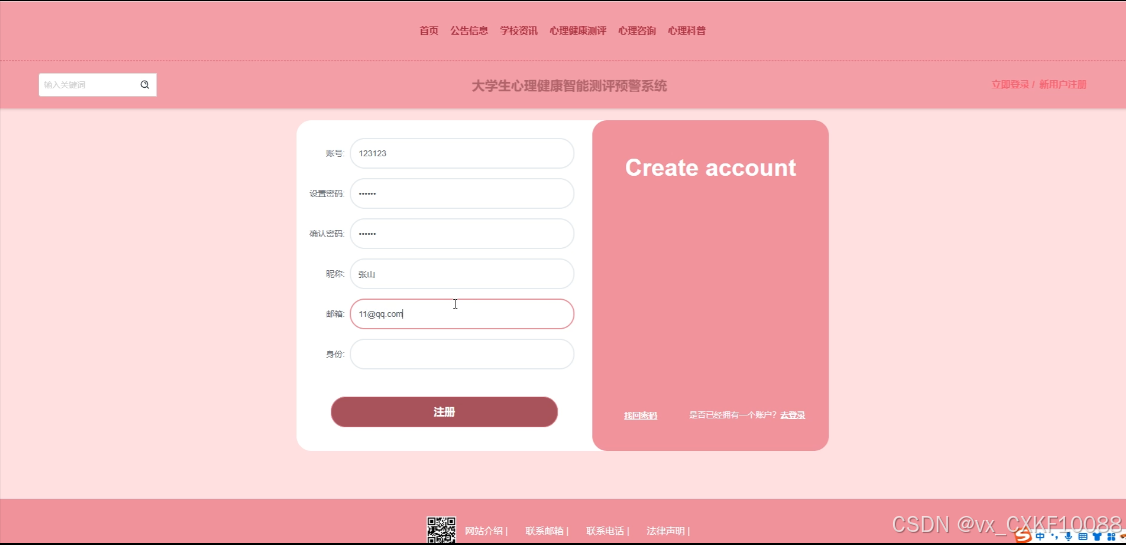 - 注册登录:提供注册和登录系统的功能,学生用户可以通过注册拥有系统账户,注册成功后可使用账号+密码登录系统前台。