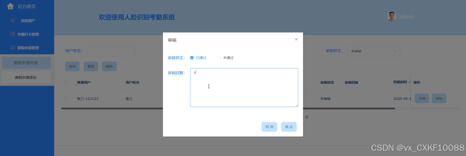 The launch of this system aims to improve the automation level of enterprise attendance management, reduce human intervention, and enhance the recognition accuracy and security of the system. The application of facial recognition technology not only effectively prevents proxy clock in behavior, but also realizes an efficient, fair, and intelligent enterprise attendance management mode. Both administrators and ordinary users can efficiently manage attendance records and leave processes through this system, greatly improving the management efficiency and service quality of enterprises.