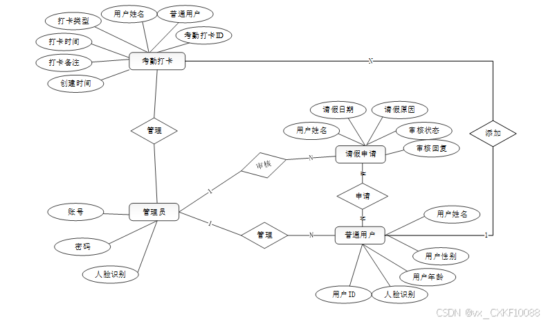 图3-2基于深度学习的人脸识别考勤系统管理员角色用例图