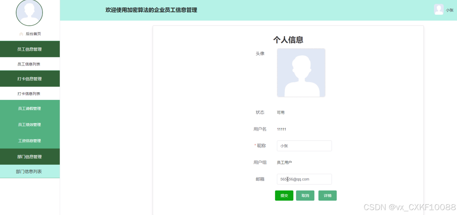 | 预期结果 | 可以查看到自己的员工详细信息 |
