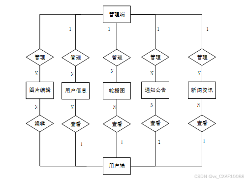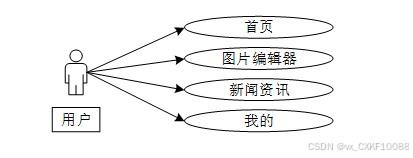 用户:首页、图片编辑器、新闻资讯、我的(基本信息、收藏)等功能。