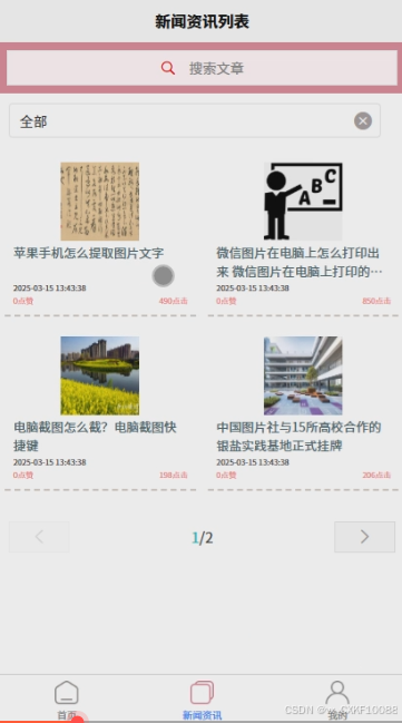 用户在新闻资讯页面可以浏览所有资讯详情,对感兴趣的资讯可以进行点赞、收藏、评论等。新闻资讯界面如图5-3所示。